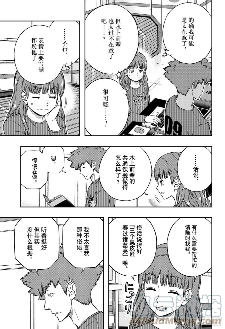 三门市,人口28万人。某一天,通往异世界的门在这里打开了。从异世界而来的侵略者“近界民”,任意蹂躏门附近的地区,让整座都市陷入恐惧之中。这时,突然出现一个神秘的团体击退了近界民。被称为境界防卫组织“BORDER”的他们,在这边的世界建立了巨大的基地,以对抗陆续来袭的近界民。