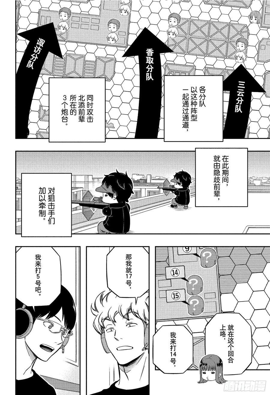 三门市,人口28万人。某一天,通往异世界的门在这里打开了。从异世界而来的侵略者“近界民”,任意蹂躏门附近的地区,让整座都市陷入恐惧之中。这时,突然出现一个神秘的团体击退了近界民。被称为境界防卫组织“BORDER”的他们,在这边的世界建立了巨大的基地,以对抗陆续来袭的近界民。